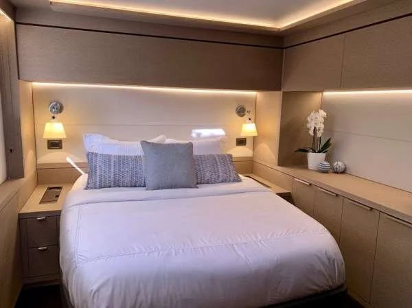 TELLSTAR has luxury accommodations for eight guests in a master stateroom with seating area. There are 3 additional queen cabins that are elegantly appointed. For additional flexibility, one cabin can be converted from a queen bed into 2 individual berths.